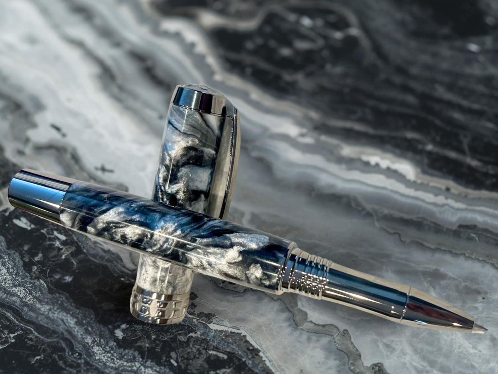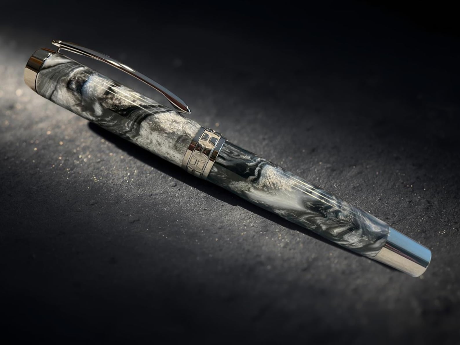 ~Your New Striking “Argentite” Highlander Collection Black Titanium Rollerball Pen. Each Pen Is One Of A Kind, Hand Lathed In Lone Tree, Colorado, USA.