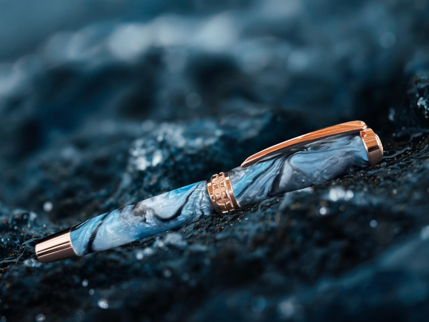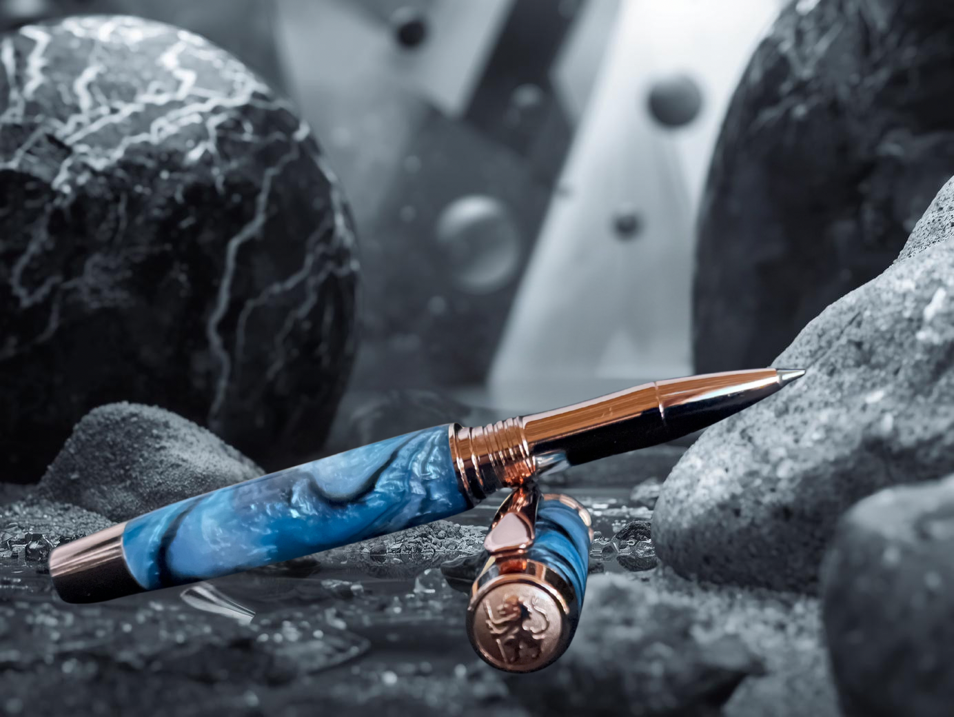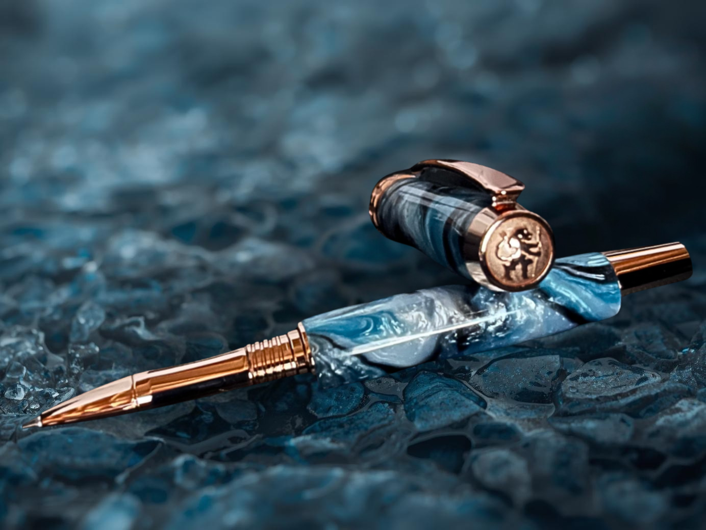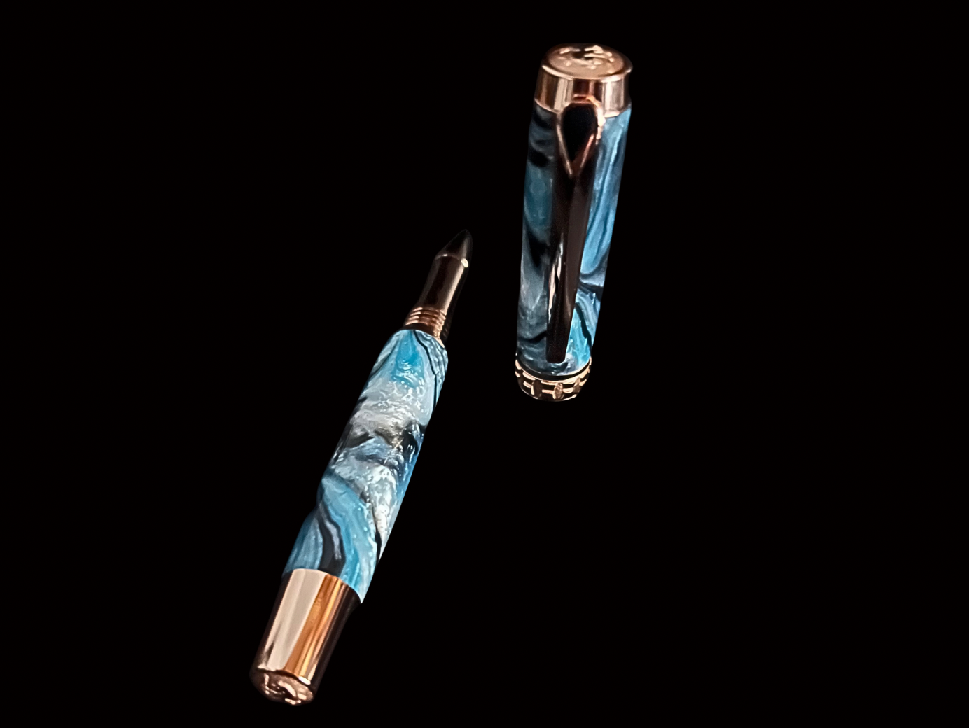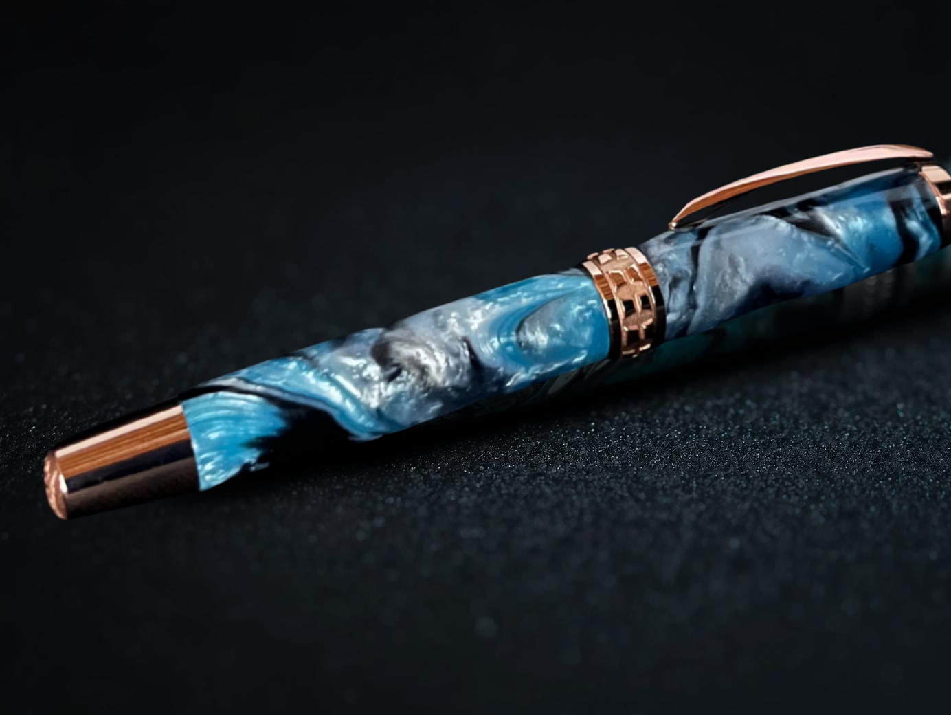 ~Your New Handmade “North Atlantic” Highlander Collection Red Gold Rollerball Pen. Each Pen Is One Of A Kind, Hand Poured And Hand Lathed In Lone Tree, Colorado, USA.