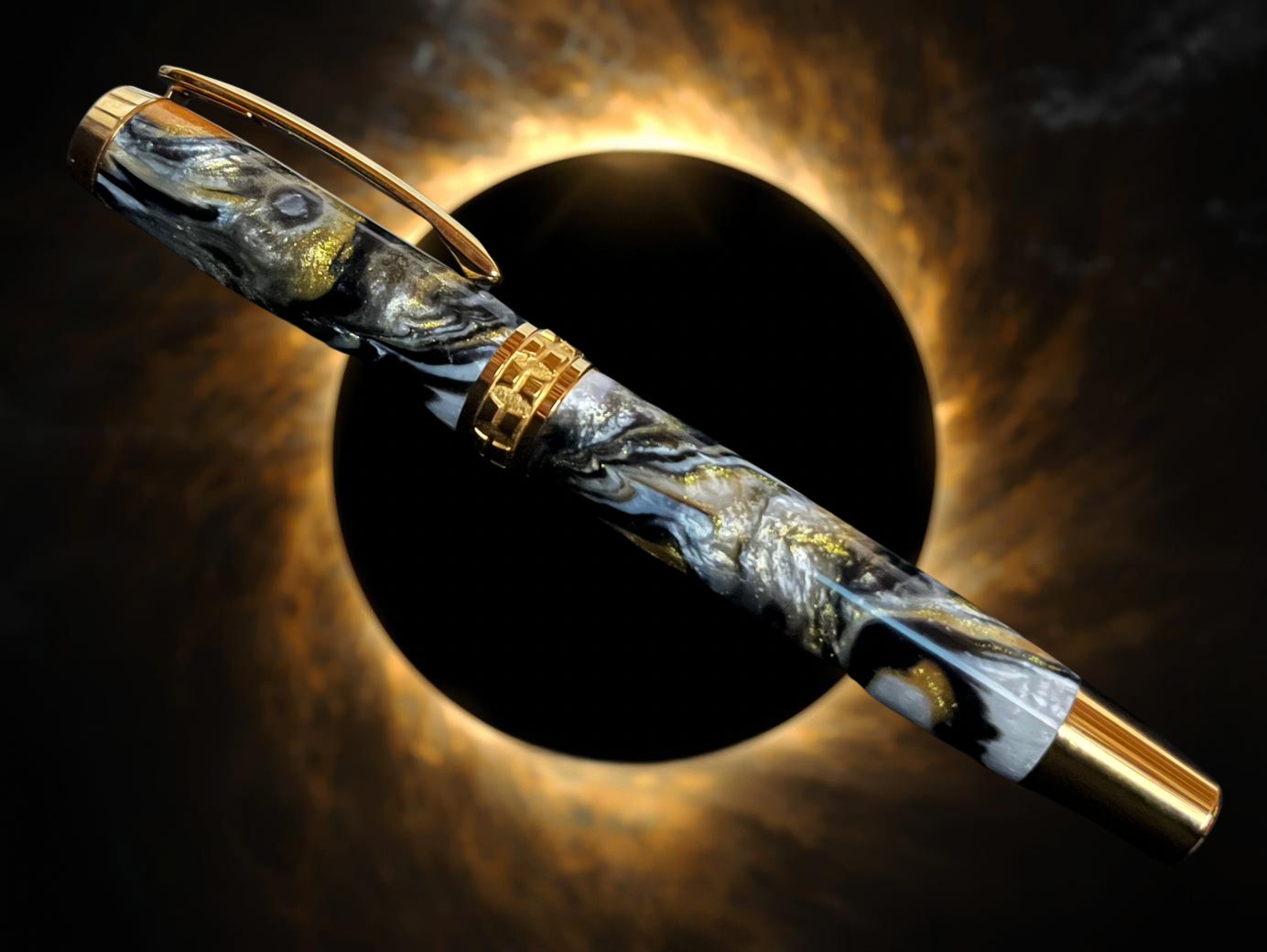 Solar Eclipse Rollerball Pen (gold trim + hand-poured resin)