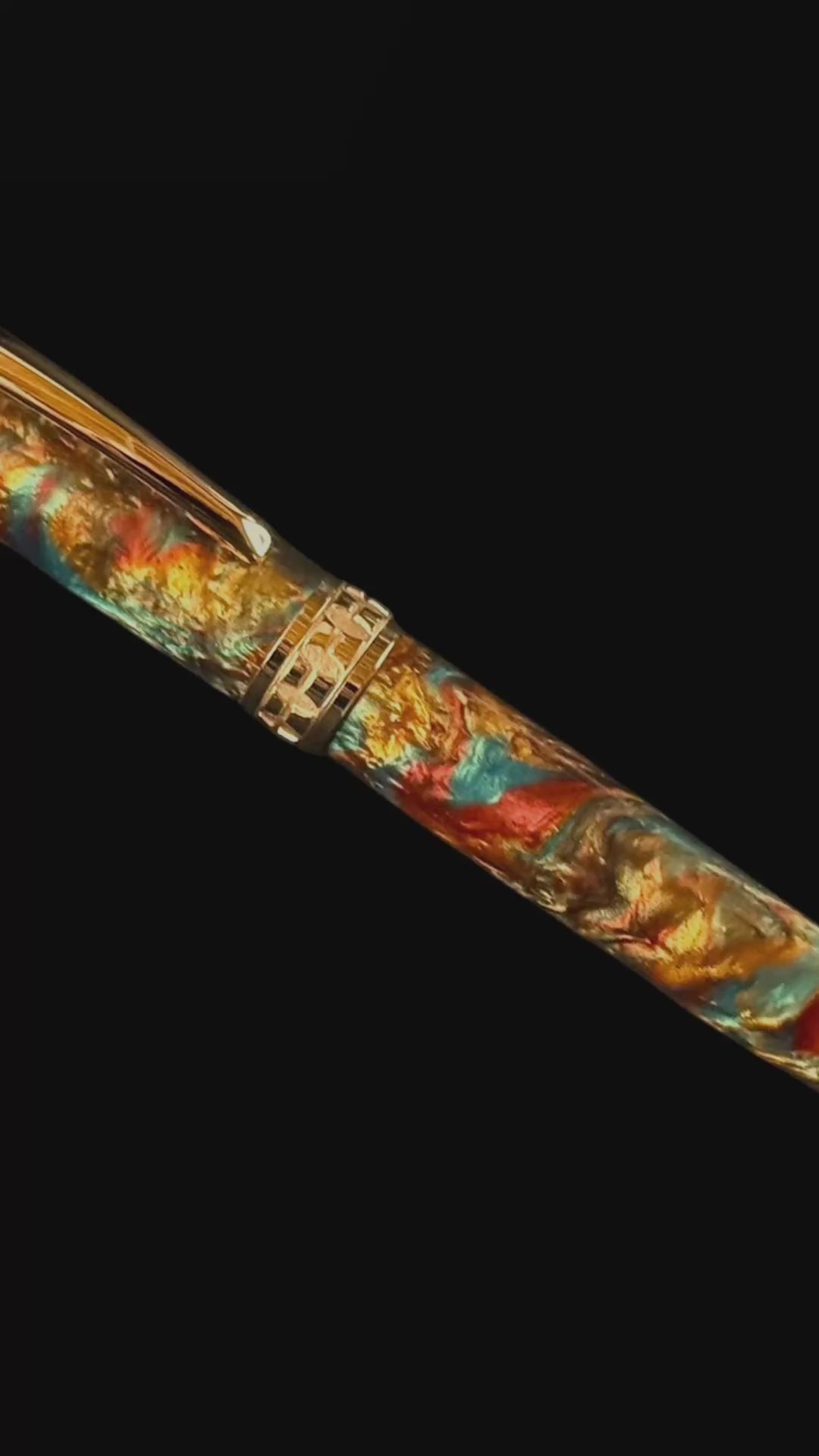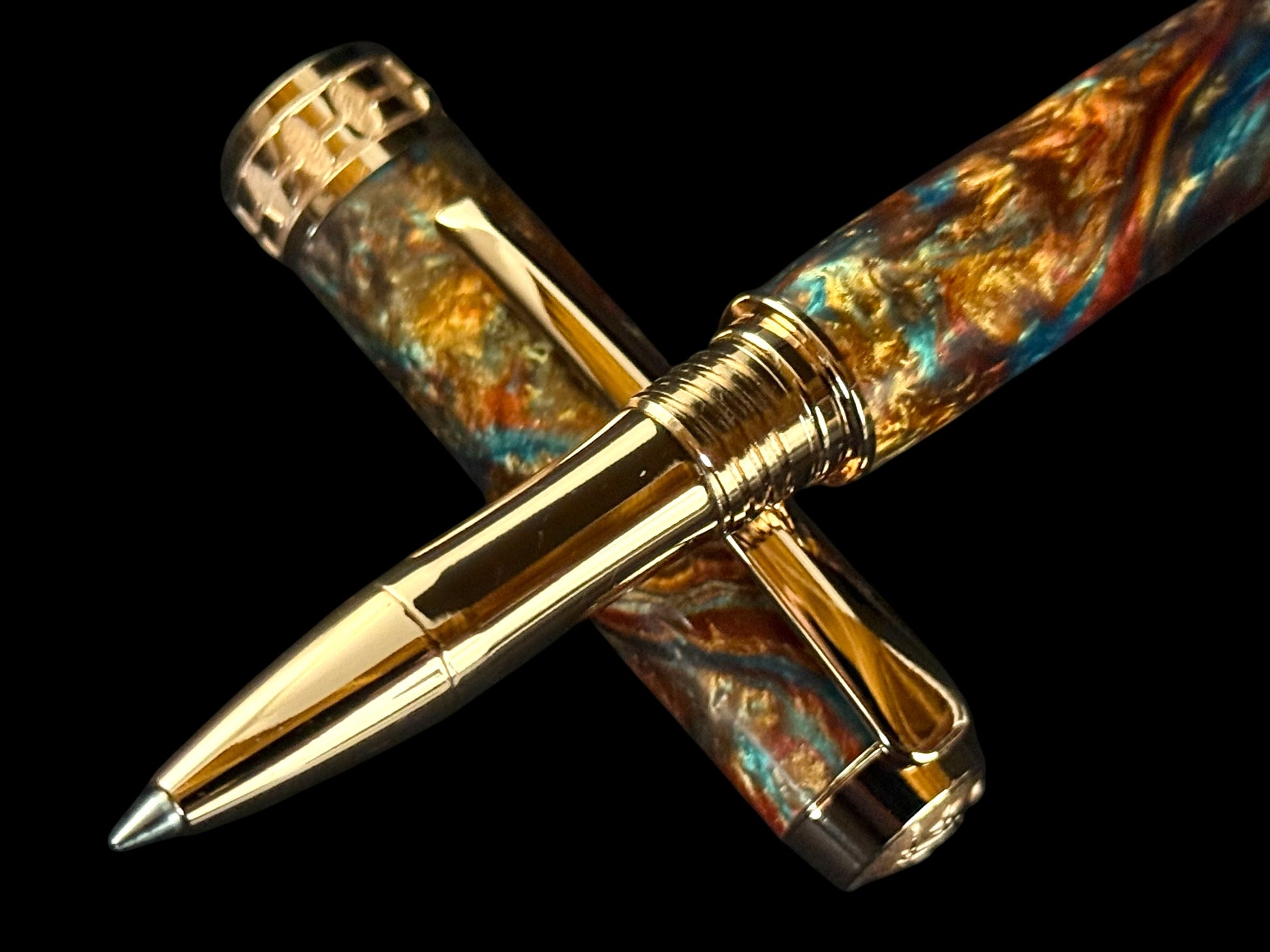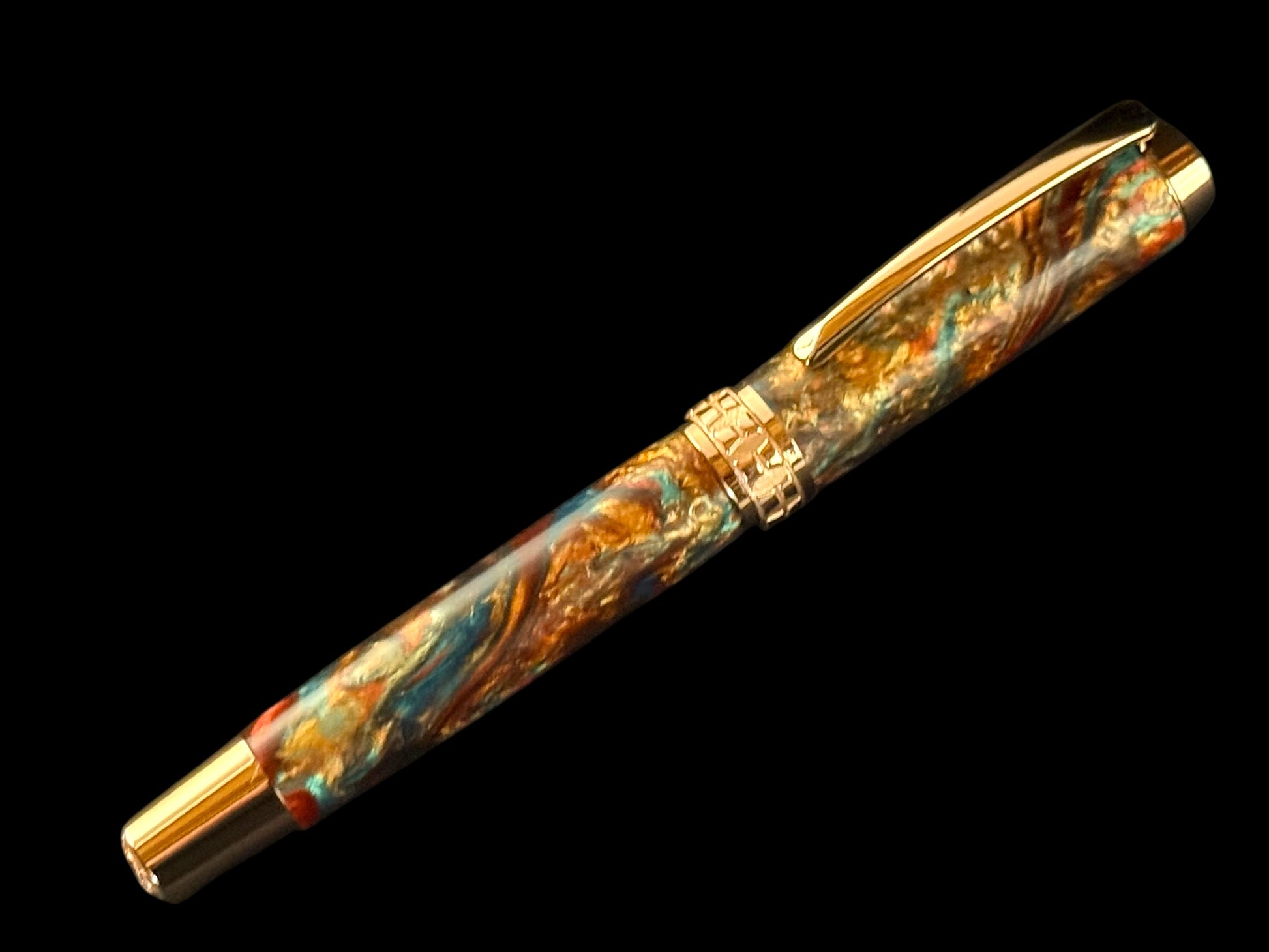 ~Your New Bespoken “Dragon Skin” Highlander Collection Red Gold Rollerball Pen. Each Pen Is One Of A Kind, Hand Lathed In Lone Tree, Colorado, USA.
