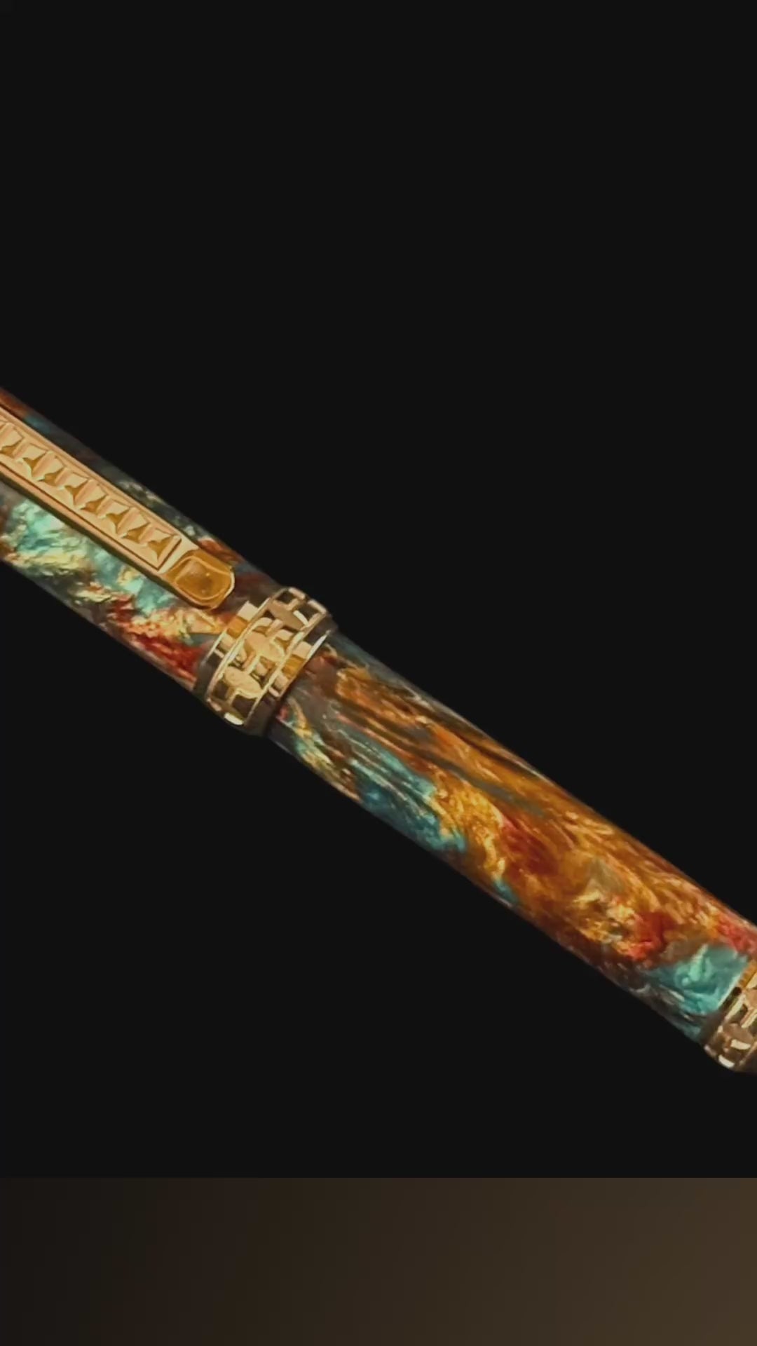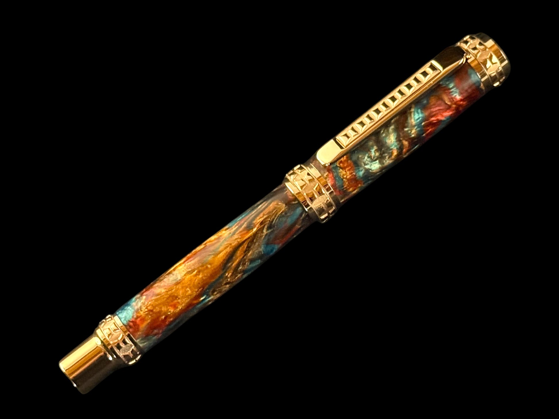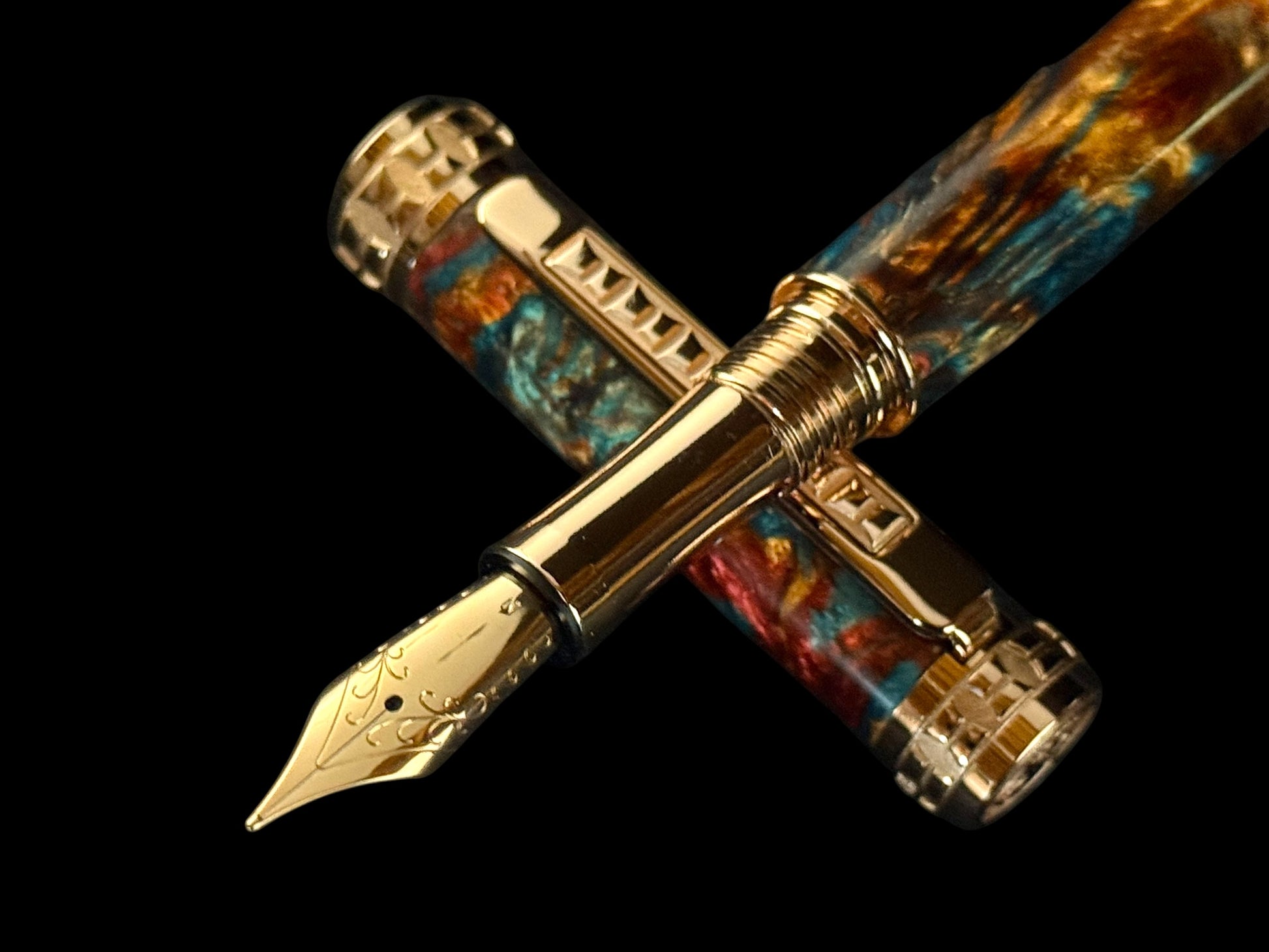 ~Your New “Dragon Skin” Edinburgh Collection Red Gold Fountain Pen. Each Pen Is One Of A Kind, Handcrafted Lathed In Lone Tree, Colorado. ~ A Large International Standard German Made Disposable Black Ink Cartridge.