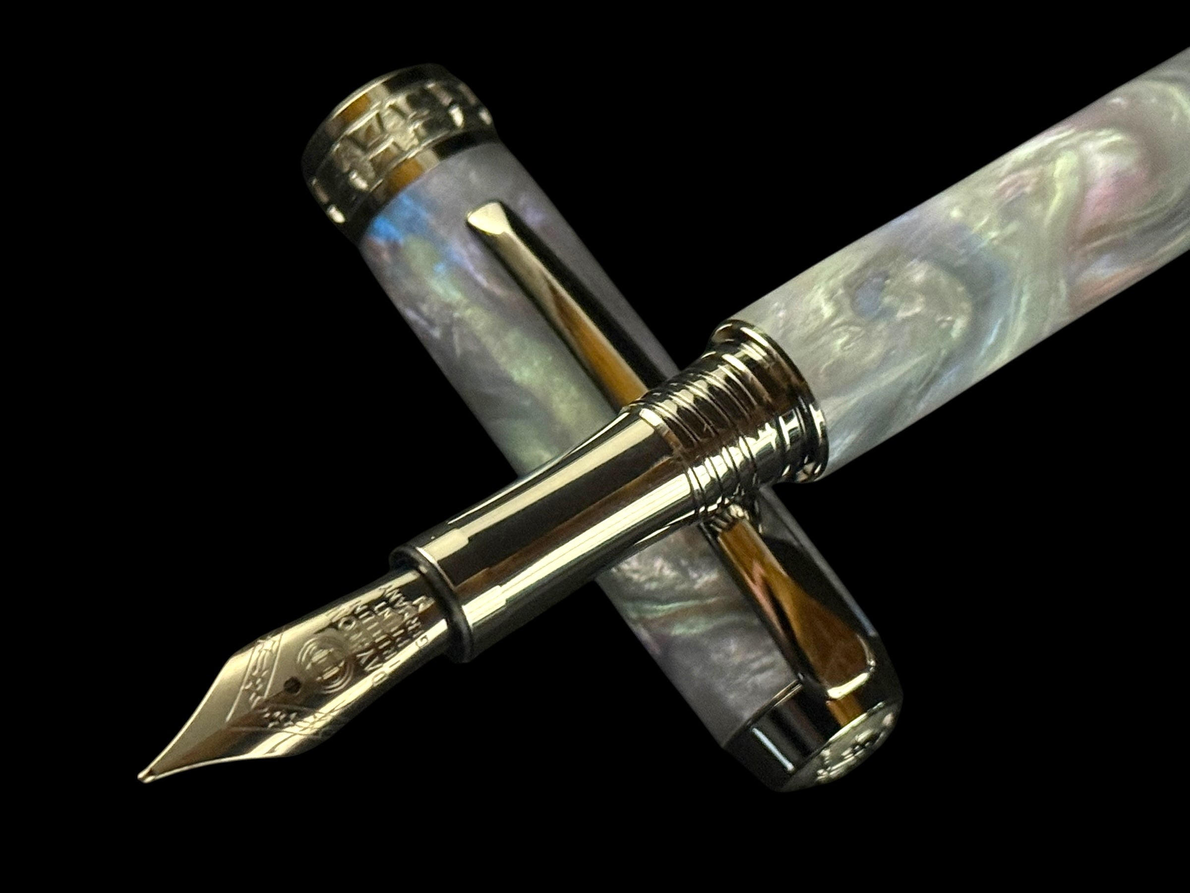 • Your striking “Mystic Opal” handmade acrylic black titanium fountain pen by Highlander Writing Instruments.
