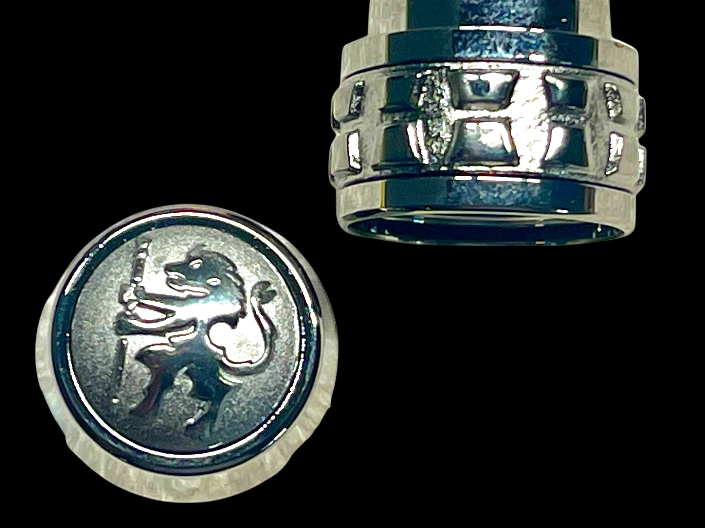 This fountain pen nib is a German iridium #12 medium point, plated in rare black ruthenium.