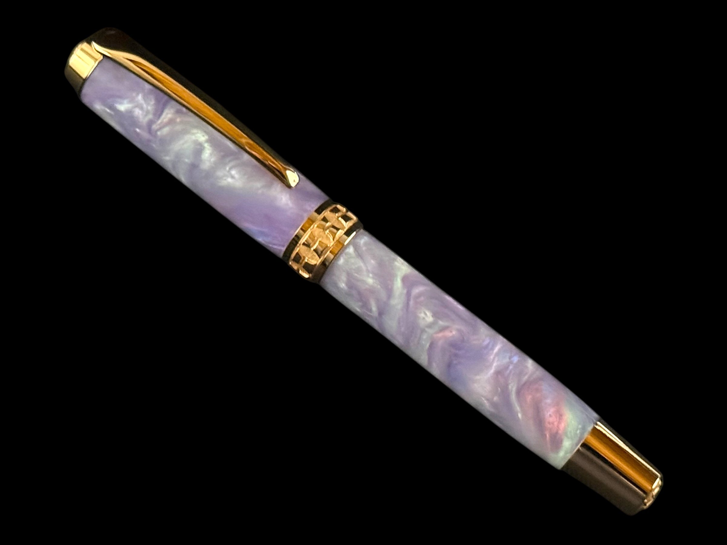 ~Your New “Amethyst Opal” Resin Handcrafted Red Gold Fountain Pen. Each Pen Is One Of A Kind, Hand Lathed In Lone Tree, Colorado, USA.
