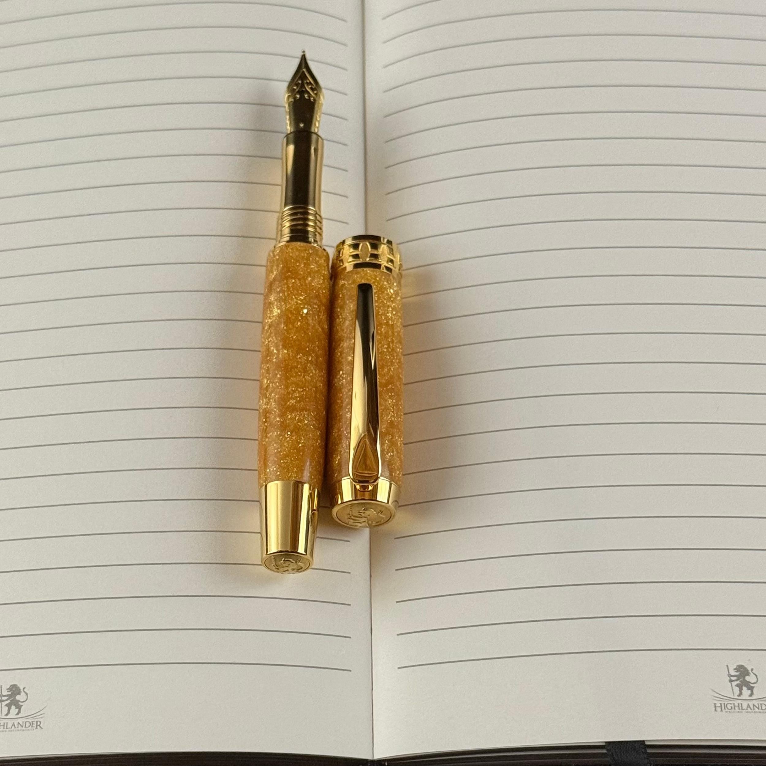 • Apollo Fountain Pen (gold resin + polished gold trim)