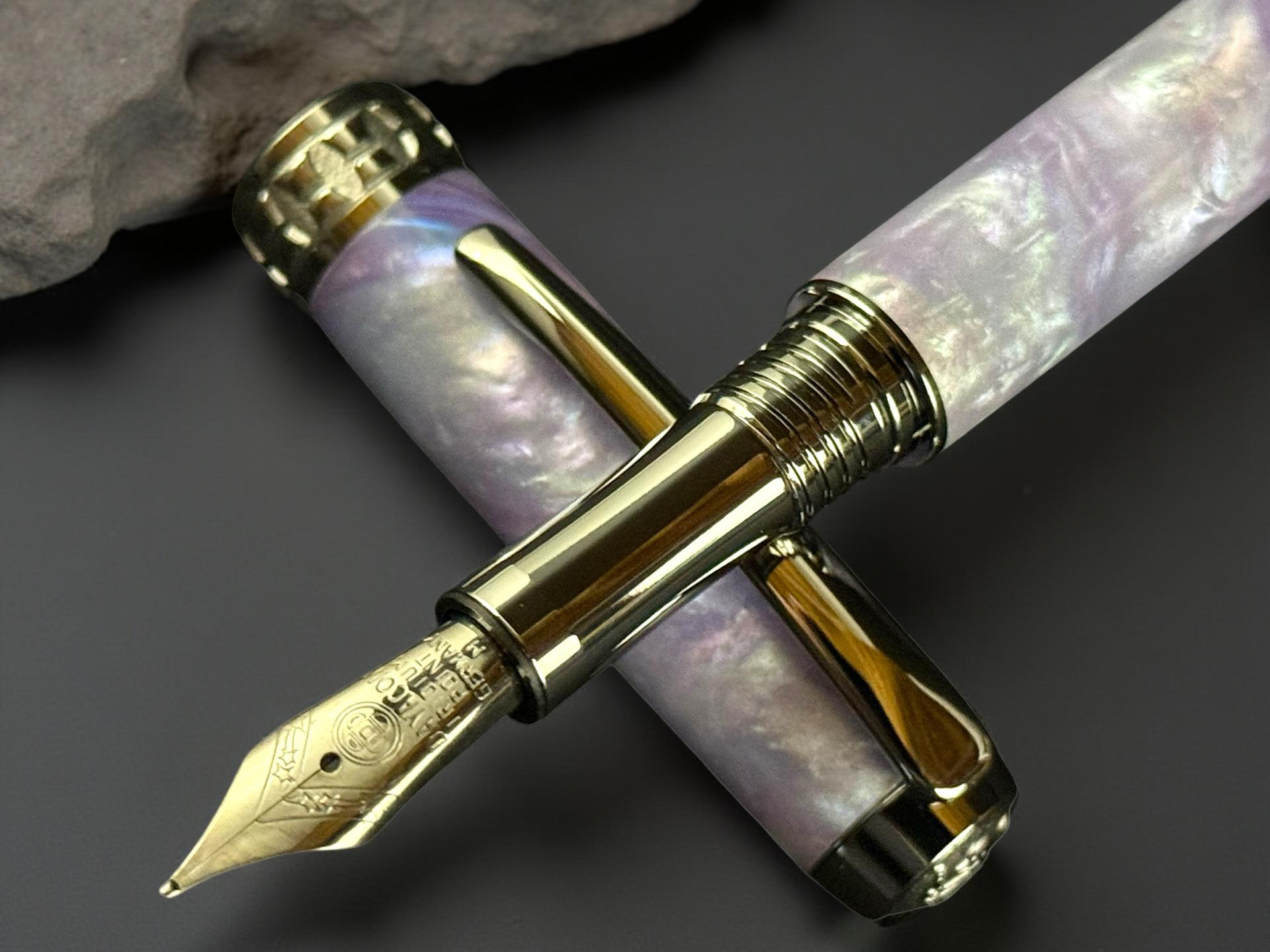 A LUMINOUS, ONE-OF-A-KIND CREATION CRAFTED BY HAND IN COLORADO. SWIRLING WITH OPAL-INSPIRED WHITES, LAVENDERS, AND PEARLESCENT TONES, THIS PEN IS FRAMED IN BLACK TITANIUM FOR A LOOK THAT’S BOTH ETHEREAL AND COMMANDING.