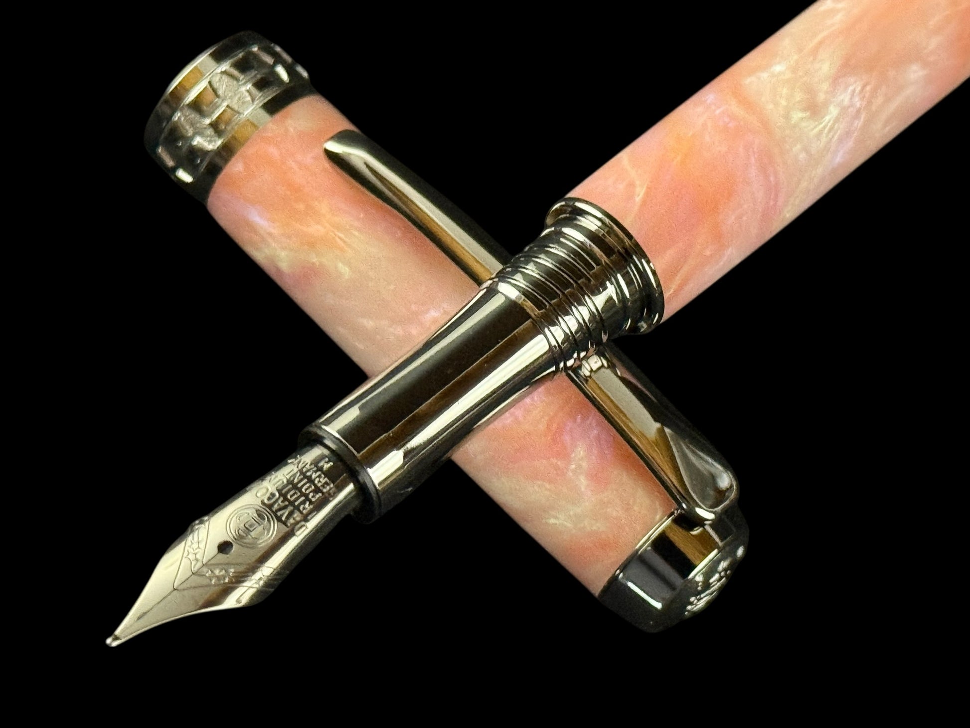 • Your brand new striking “Sunstone Opal” handmade acrylic black titanium fountain pen by Highlander Writing Instruments.