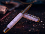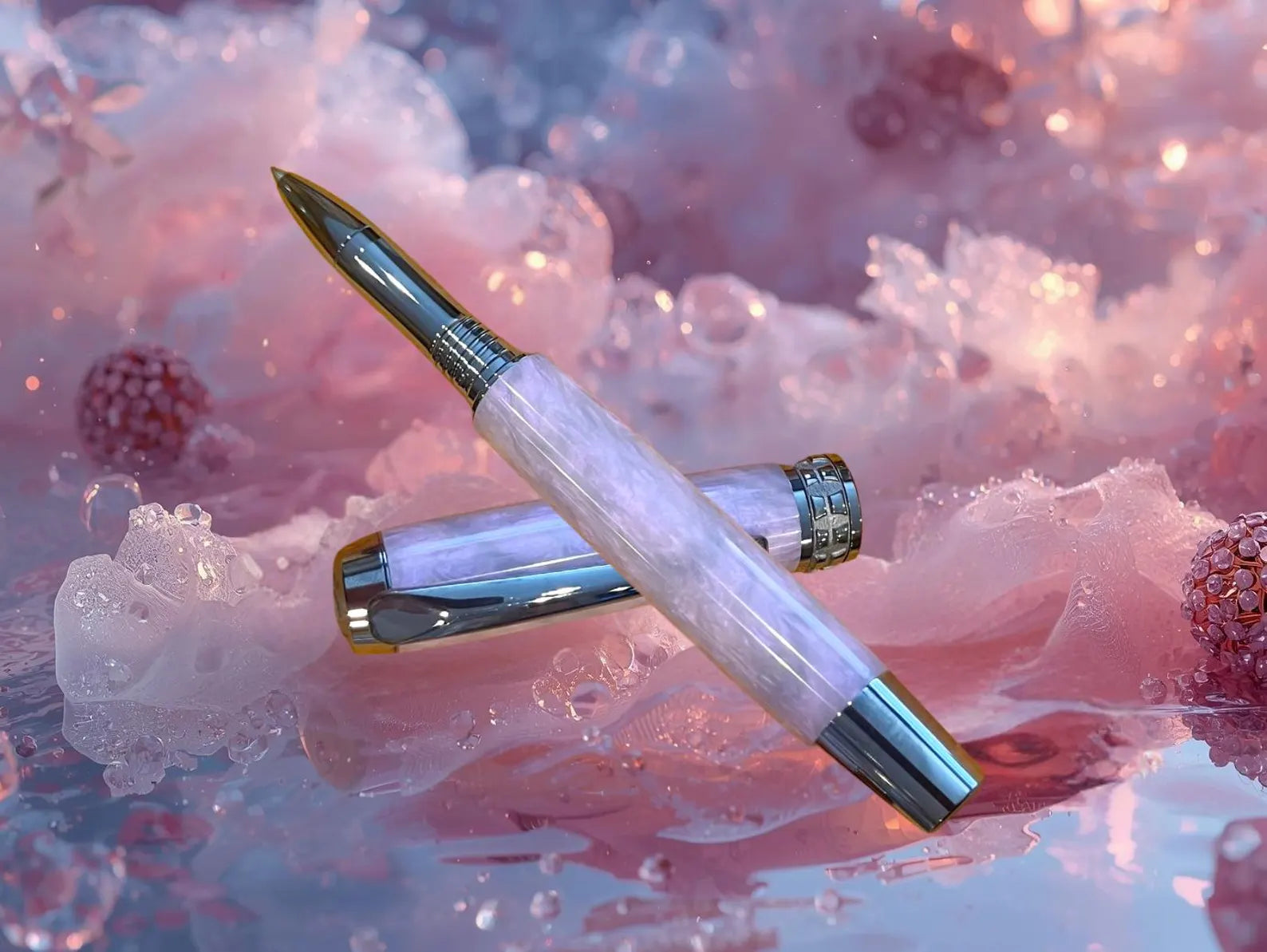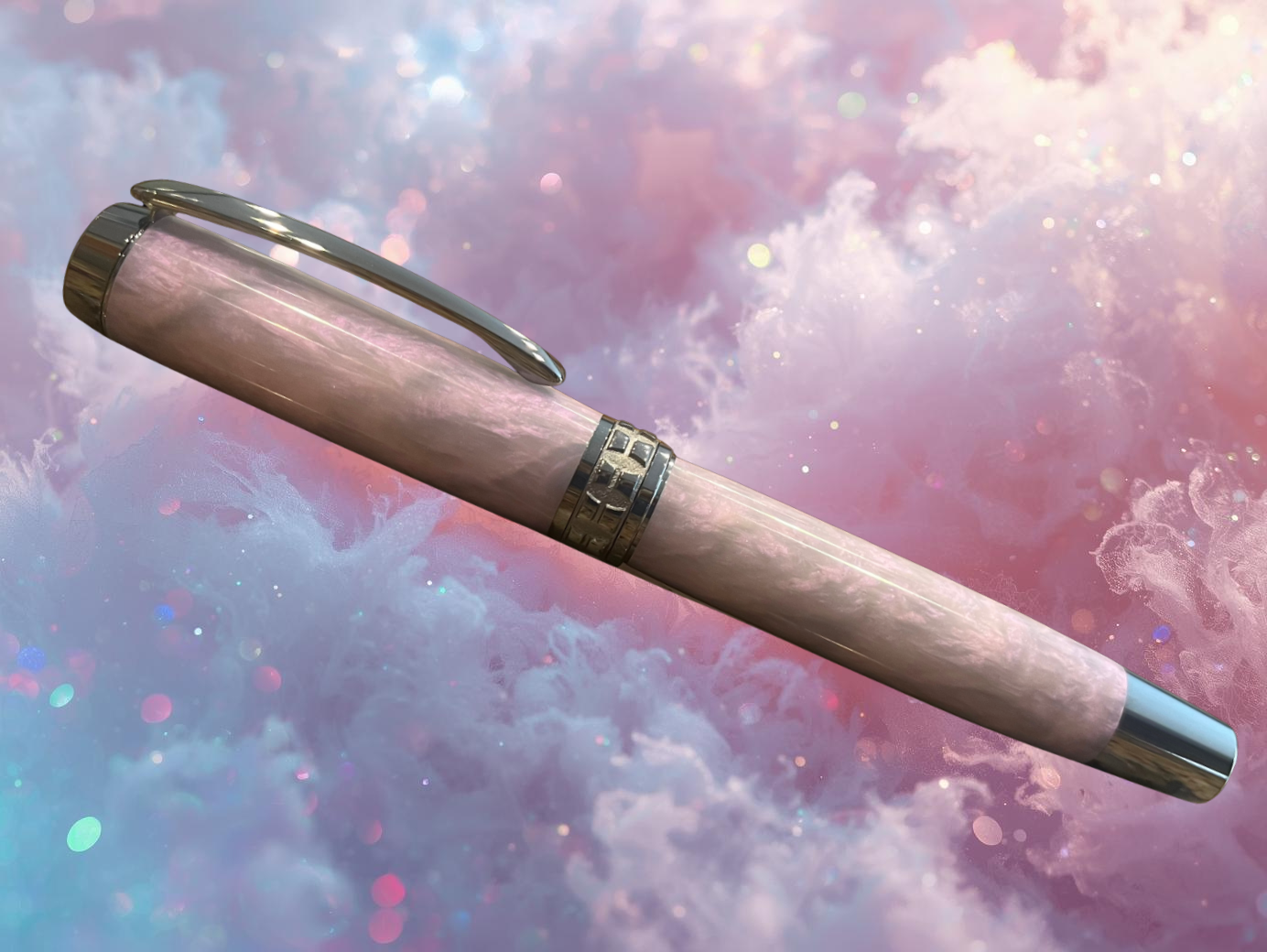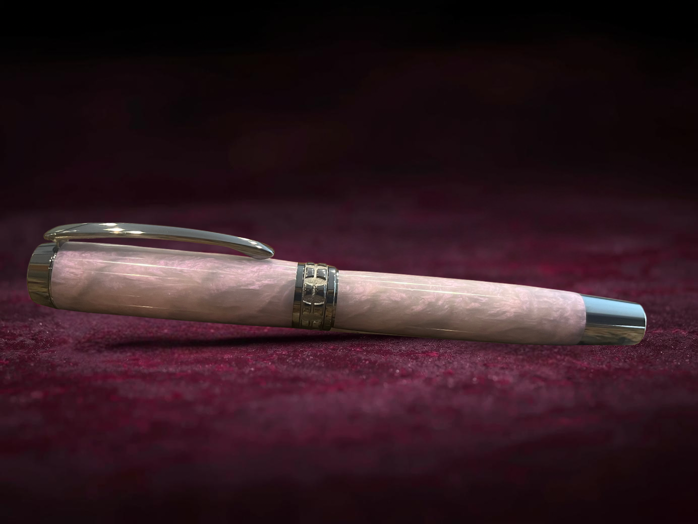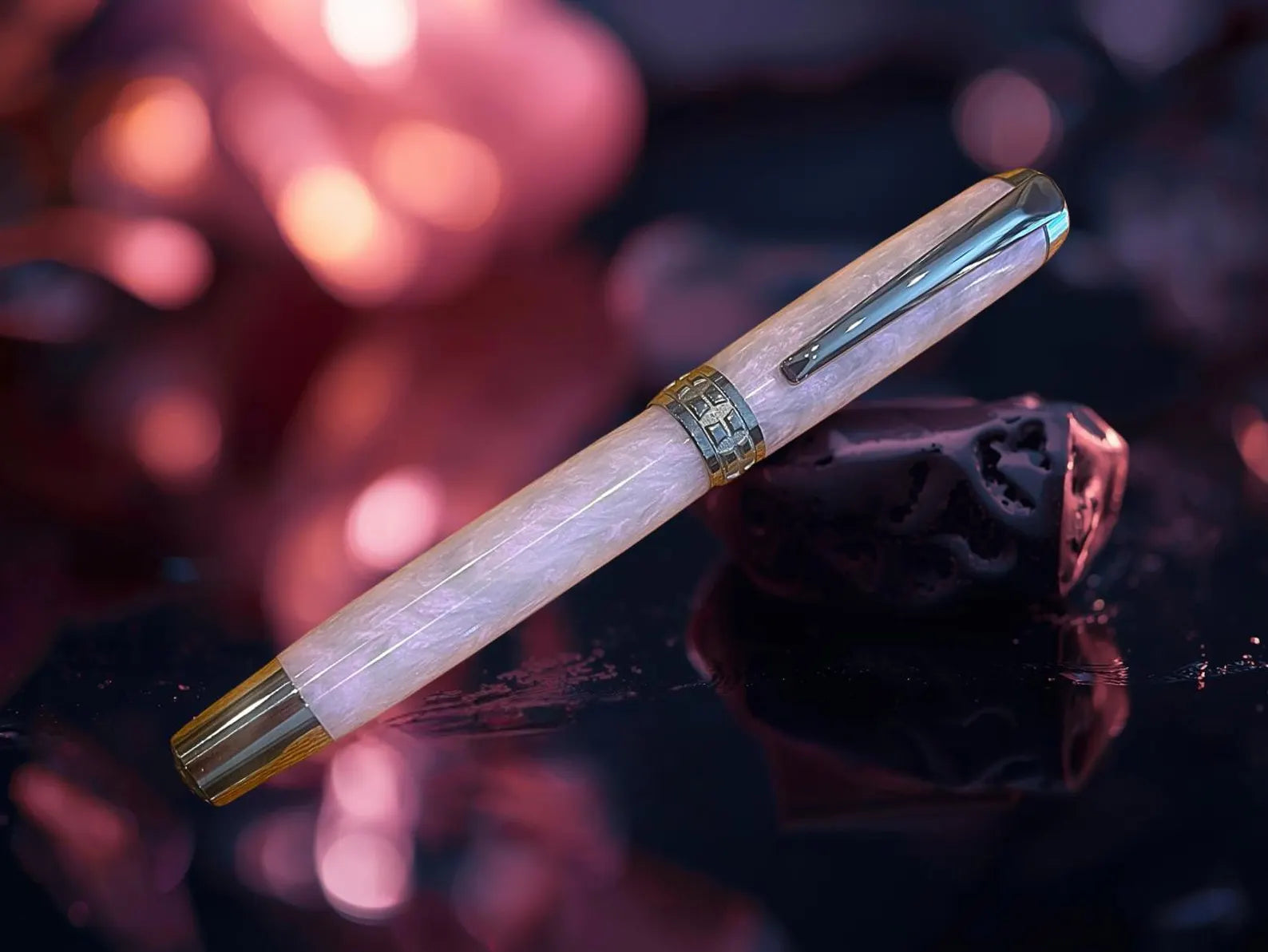 Crafted from shimmering Pink Opal resin, this pen glows with soft iridescence — a pearlescent blush swirl reminiscent of polished opal gemstones. Paired with ultra-durable Black Titanium hardware, the contrast is breathtaking: gentle color, powerful presence, and a writing instrument designed to feel both luxurious and deeply personal. With effortless glide and refined balance, it becomes the pen you reach for when the words truly matter.