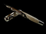 ~Your New Authentic Reticulated Python Highlander Collection Black Titanium Fountain Pen. Seam where I cut the skin is on the back side of the pen. I try to show this is photos and video. Each Pen Is One Of A Kind, Hand Lathed In Lone Tree, Colorado, USA.