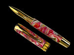 Birthday Bloom Rollerball Pen (pink, white, and gold resin + gold trim)