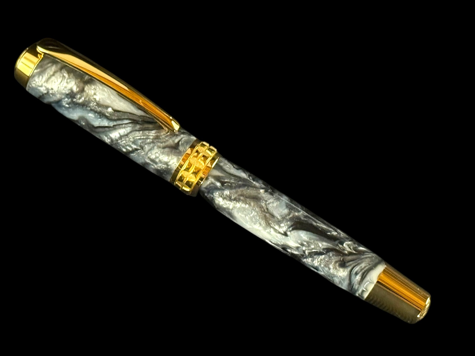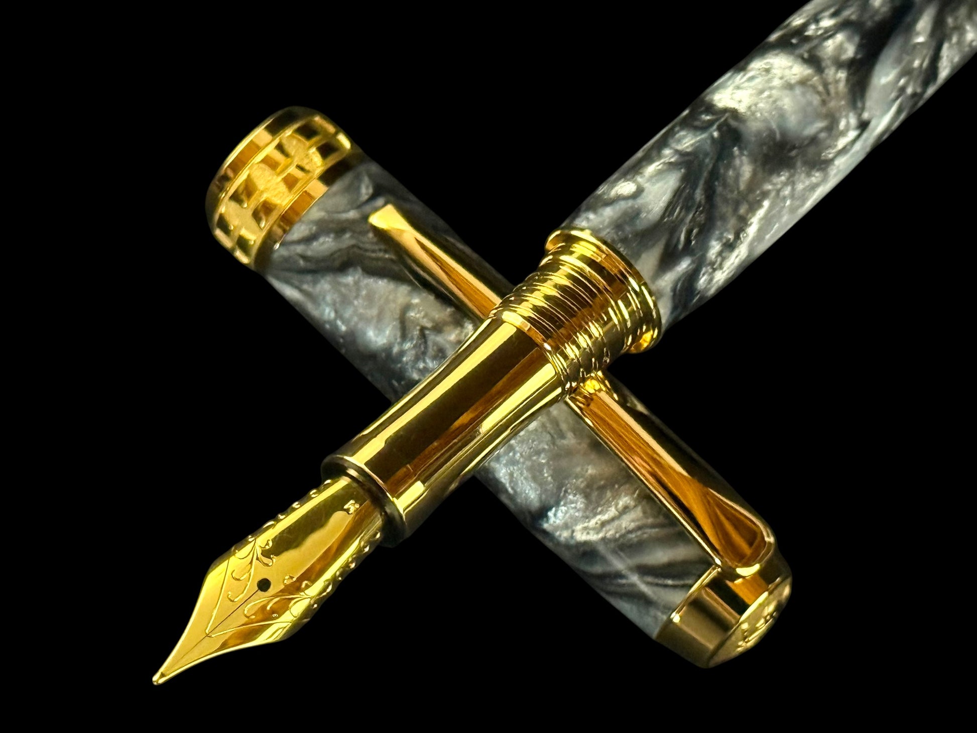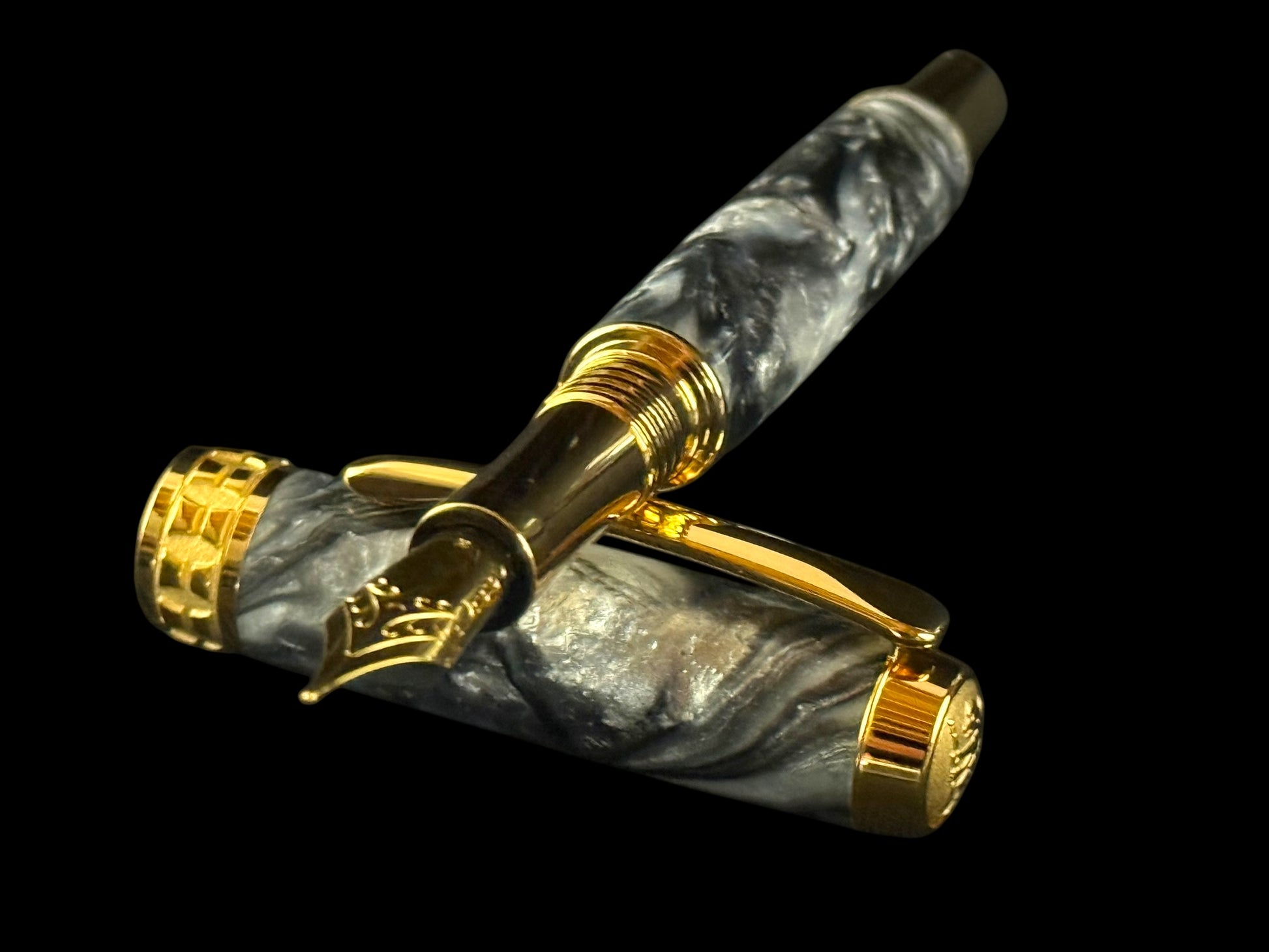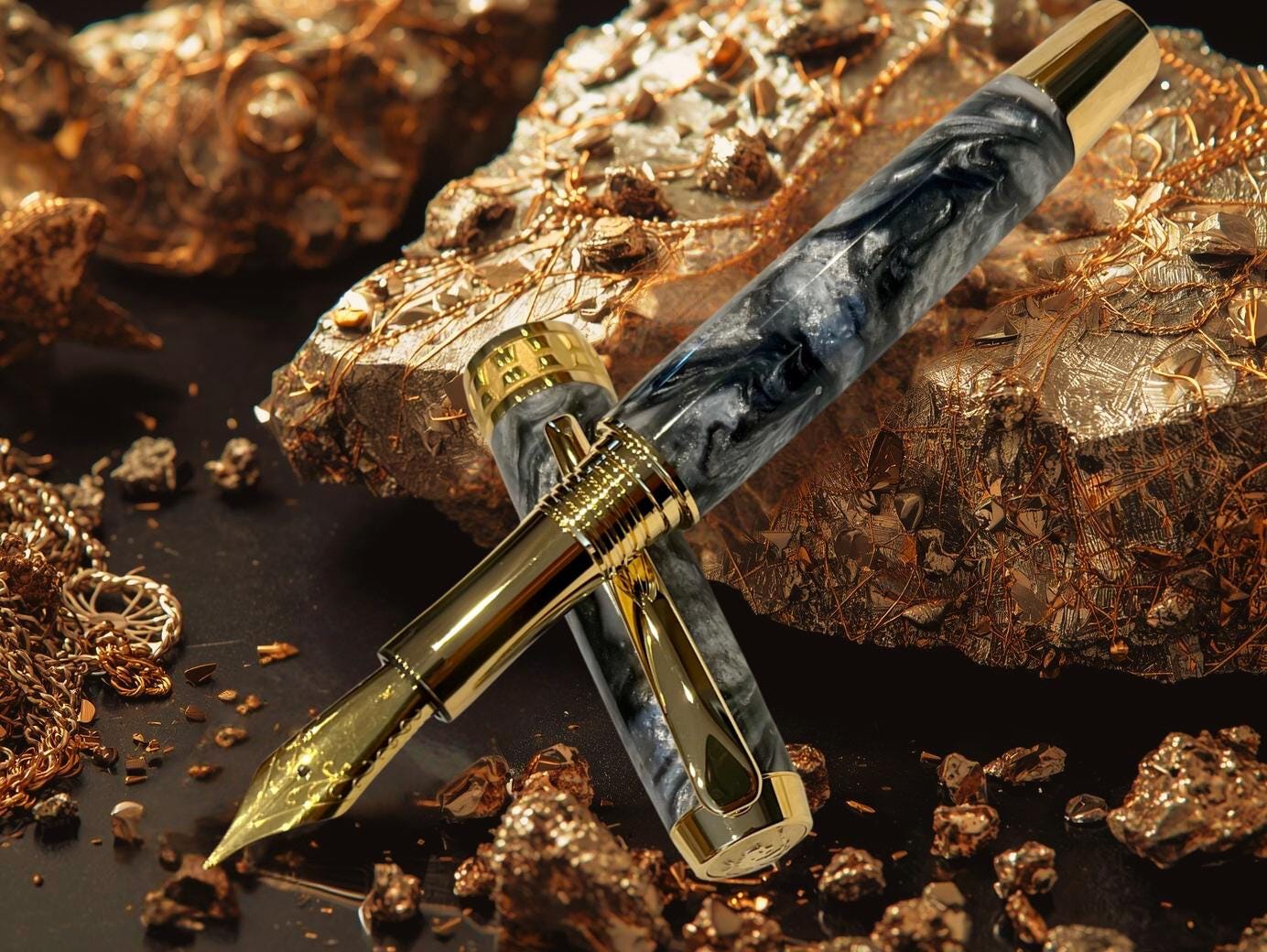 ~Your New Bespoke Handcrafted “Argentite” Gold Fountain Pen. Each Pen Is One Of A Kind, Hand Poured And Lathed In Lone Tree, Colorado, USA.