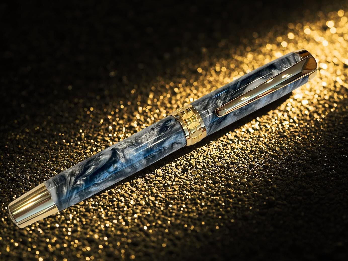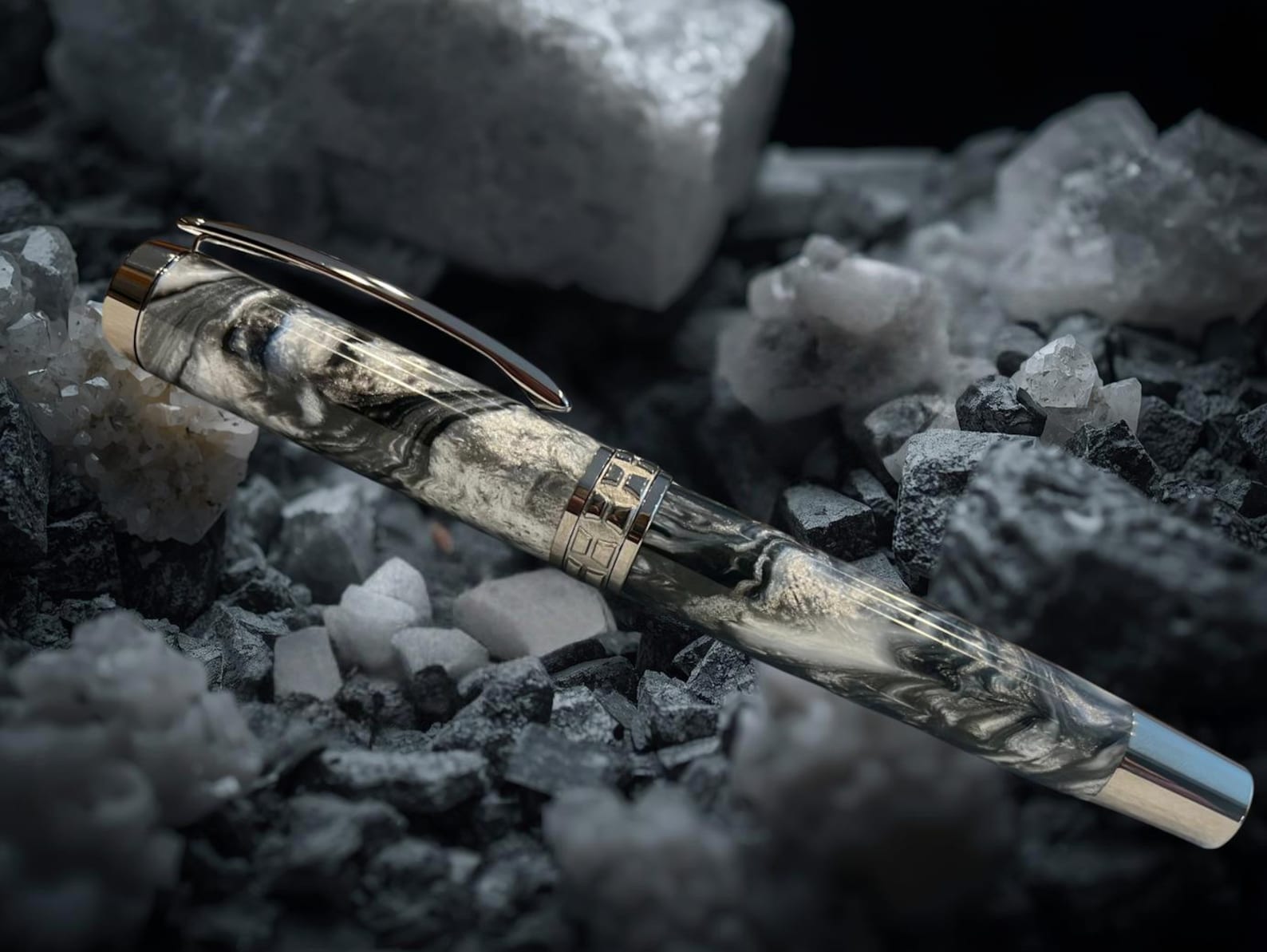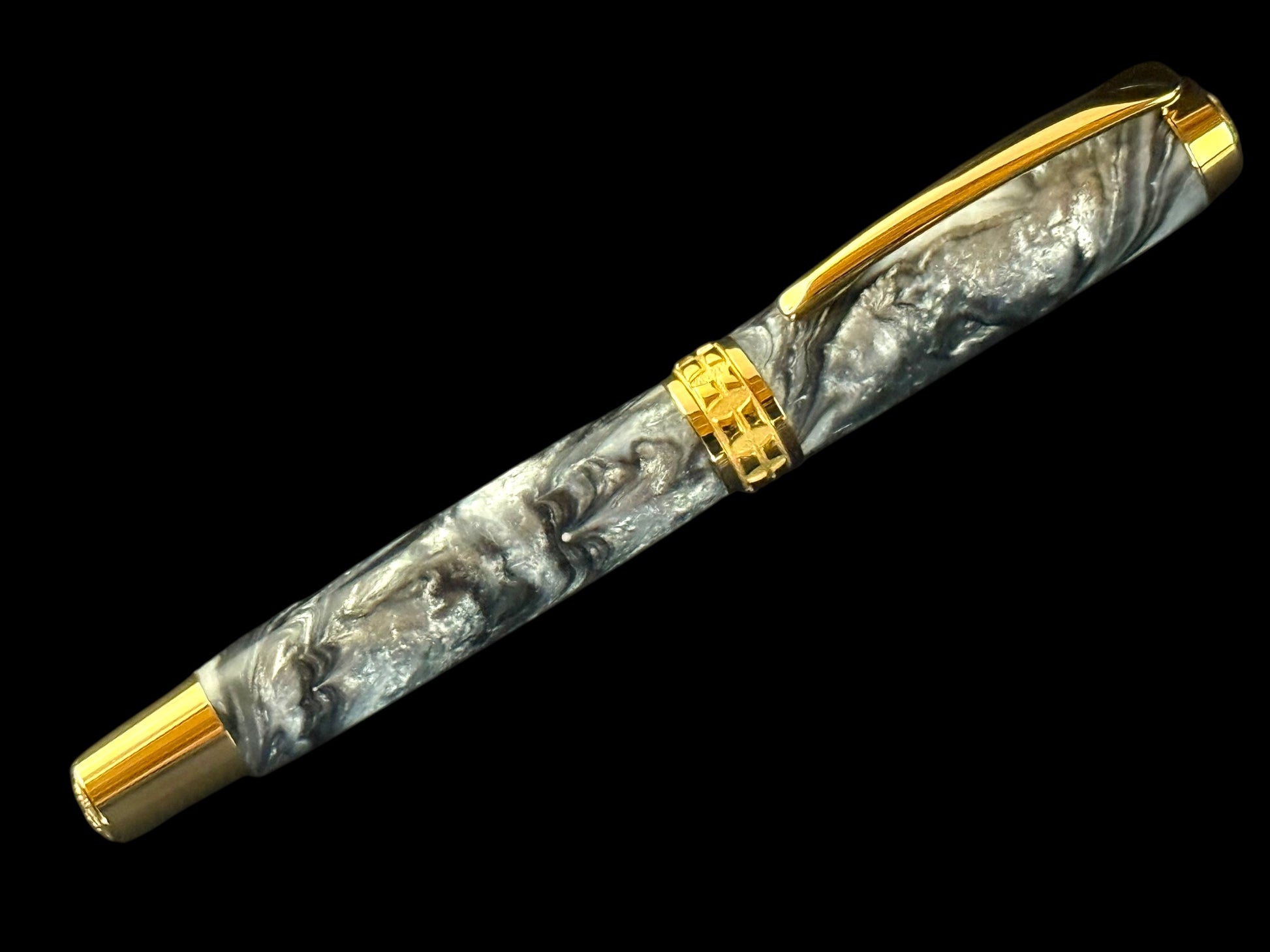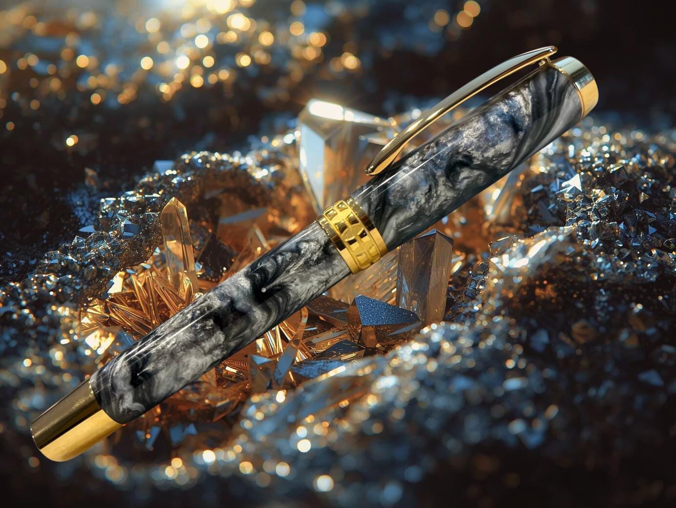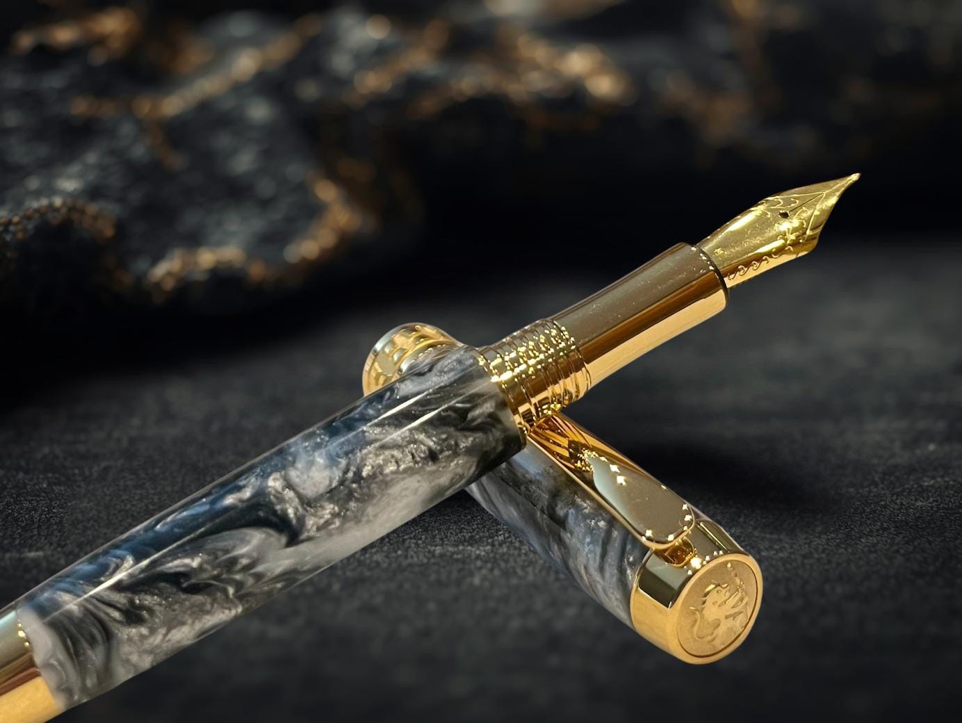 ~Your New Bespoke Handcrafted “Argentite” Gold Fountain Pen. Each Pen Is One Of A Kind, Hand Poured And Lathed In Lone Tree, Colorado, USA.