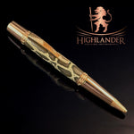 • Your brand new Authentic Burmese Python Skin handmade Highlander Writing Instruments Red Gold Glasgow ballpoint pen. This highly figured Burmese Python was captured in Florida, as they are not native and are ravaging the Everglades.