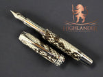 DESIGN: Our Custom Hardware Intricately Engraved With A Rampant Lion, A Revered National Symbol Of Scotland, Is A Testament To Our Craftsmanship And Heritage. This Majestic Creature, Depicted Standing On Writing Paper Holding a Pen, Adorns Both The Cap And Body Finials, Embodying Strength, Courage, And Nobility. Beyond Its Symbolic Significance, The Lion Provides Balanced Weight Distribution, Ensuring Writers Precision In Every Stroke. The Center Band Showcases A Series Of Our Understated Yet Distinguished “H” Logo. A Subtle Nod To Our Identity And A Reminder That We Are All Highlanders At Heart.
