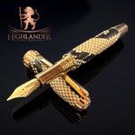 DESIGN: Our Custom Hardware Intricately Engraved With A Rampant Lion, A Revered National Symbol Of Scotland, Is A Testament To Our Craftsmanship And Heritage. This Majestic Creature, Depicted Standing On Writing Paper Holding a Pen, Adorns Both The Cap And Body Finials, Embodying Strength, Courage, And Nobility. Beyond Its Symbolic Significance, The Lion Provides Balanced Weight Distribution, Ensuring Writers Precision In Every Stroke. The Center Band Showcases A Series Of Our Understated Yet Distinguished “H” Logo. A Subtle Nod To Our Identity And A Reminder That We Are All Highlanders At Heart.