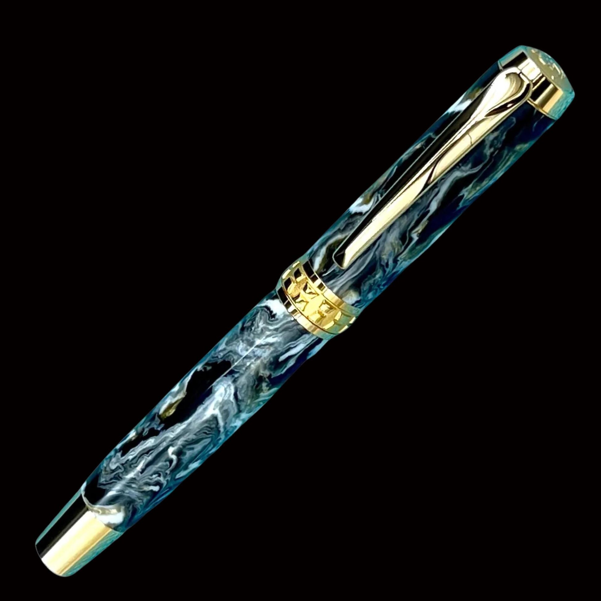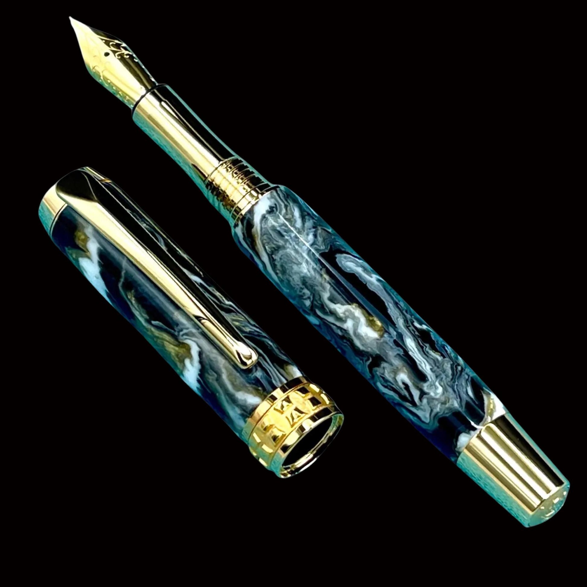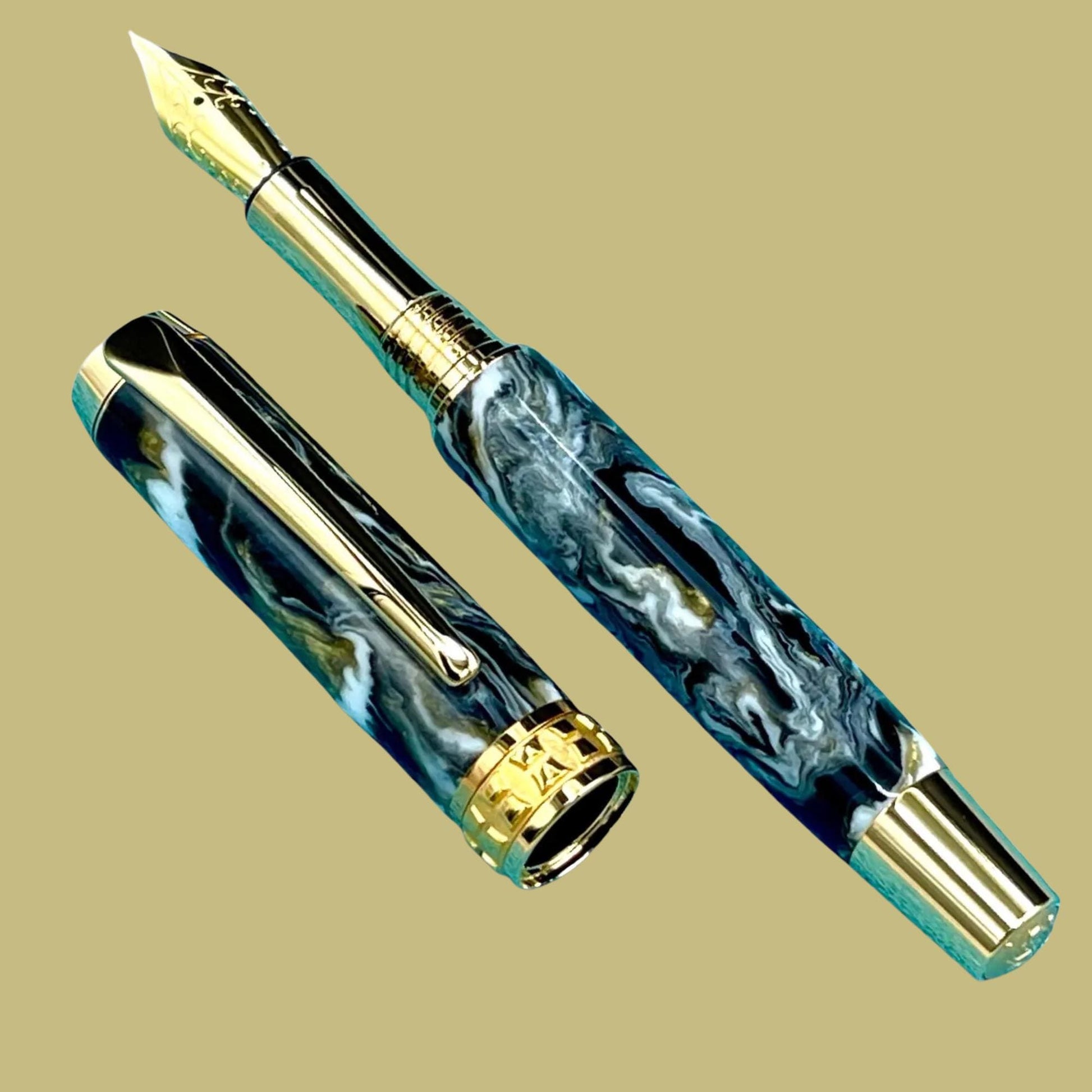 • Your handcrafted Black & Gold Swirl Red Gold Fountain Pen