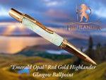 • Your brand new “Emerald Opal” resin handmade Highlander Writing Instruments Red Gold Glasgow ballpoint pen.
