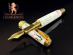 Finished in radiant gold trim and paired with Highlander’s signature engraved Rampant Lion finials, this one-of-a-kind creation is both art and instrument. Designed for fluid writing and thoughtful gifting.