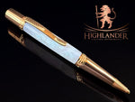 • Your brand new “Iridescent Blue Pearl” resin handmade Highlander Writing Instruments Red Gold Glasgow ballpoint pen.