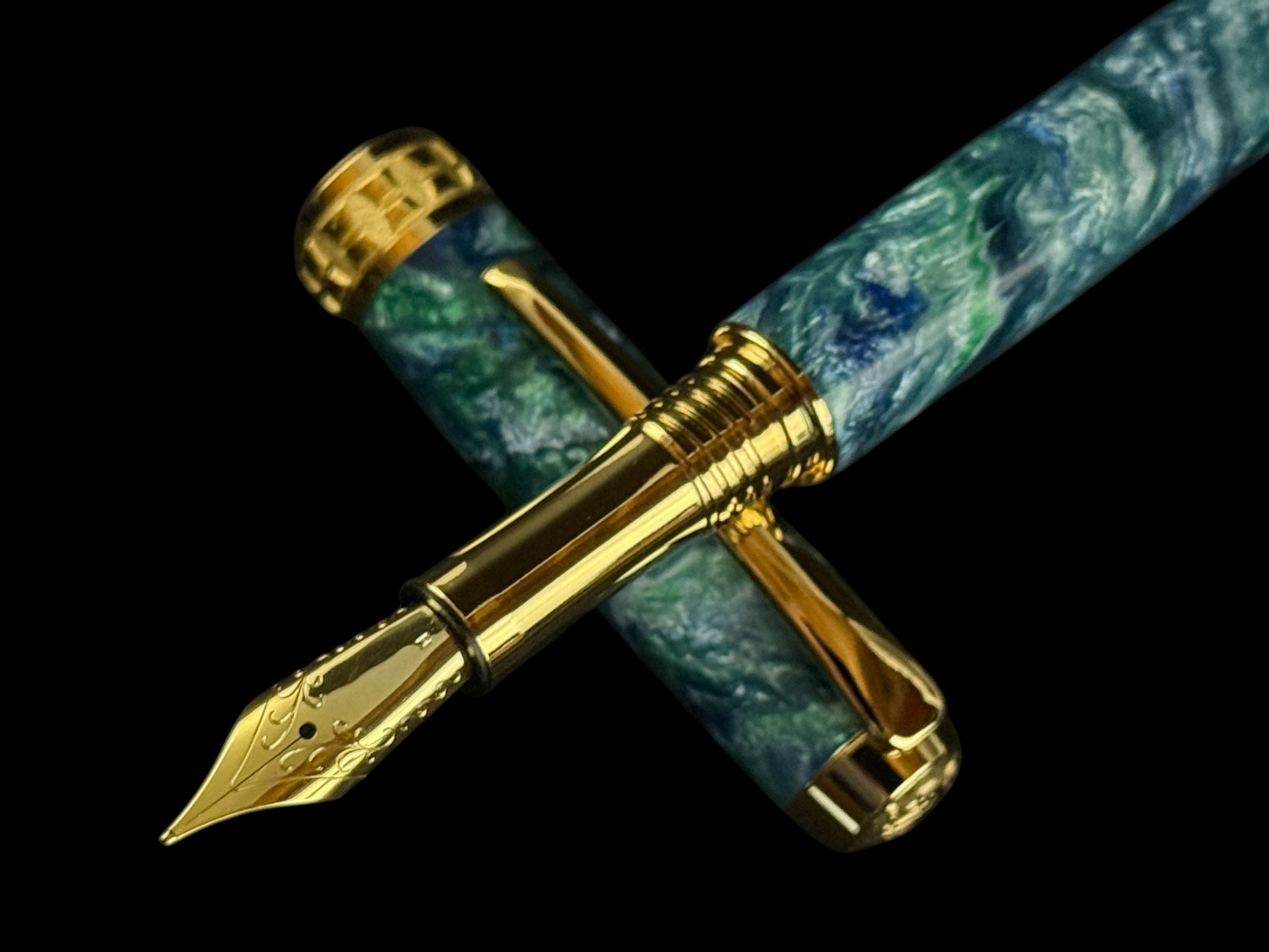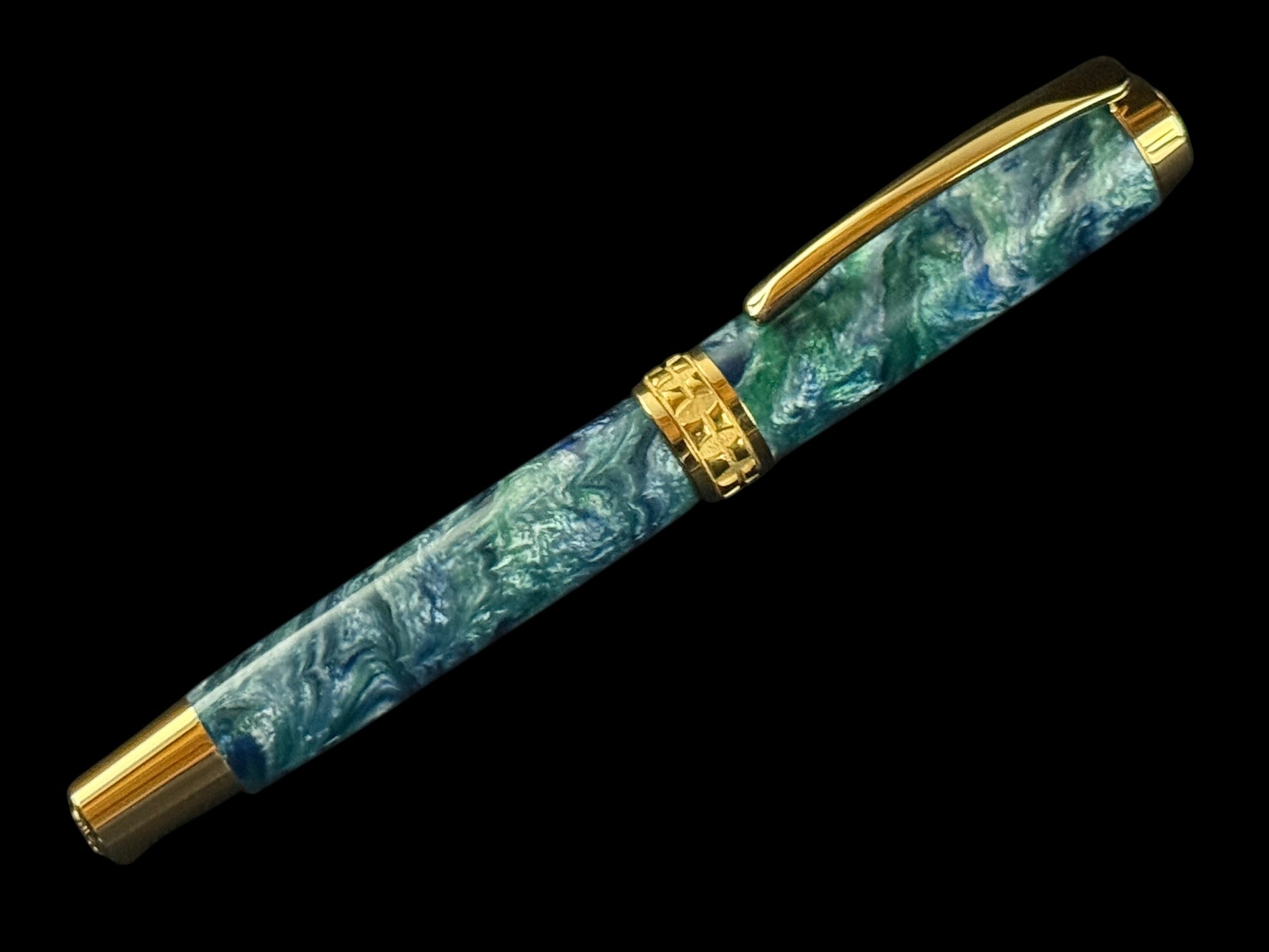 ~Your New “Kona Blue” Highlander Collection Gold Fountain Pen. Each Pen Is One Of A Kind, Hand Lathed In Lone Tree, Colorado, USA.